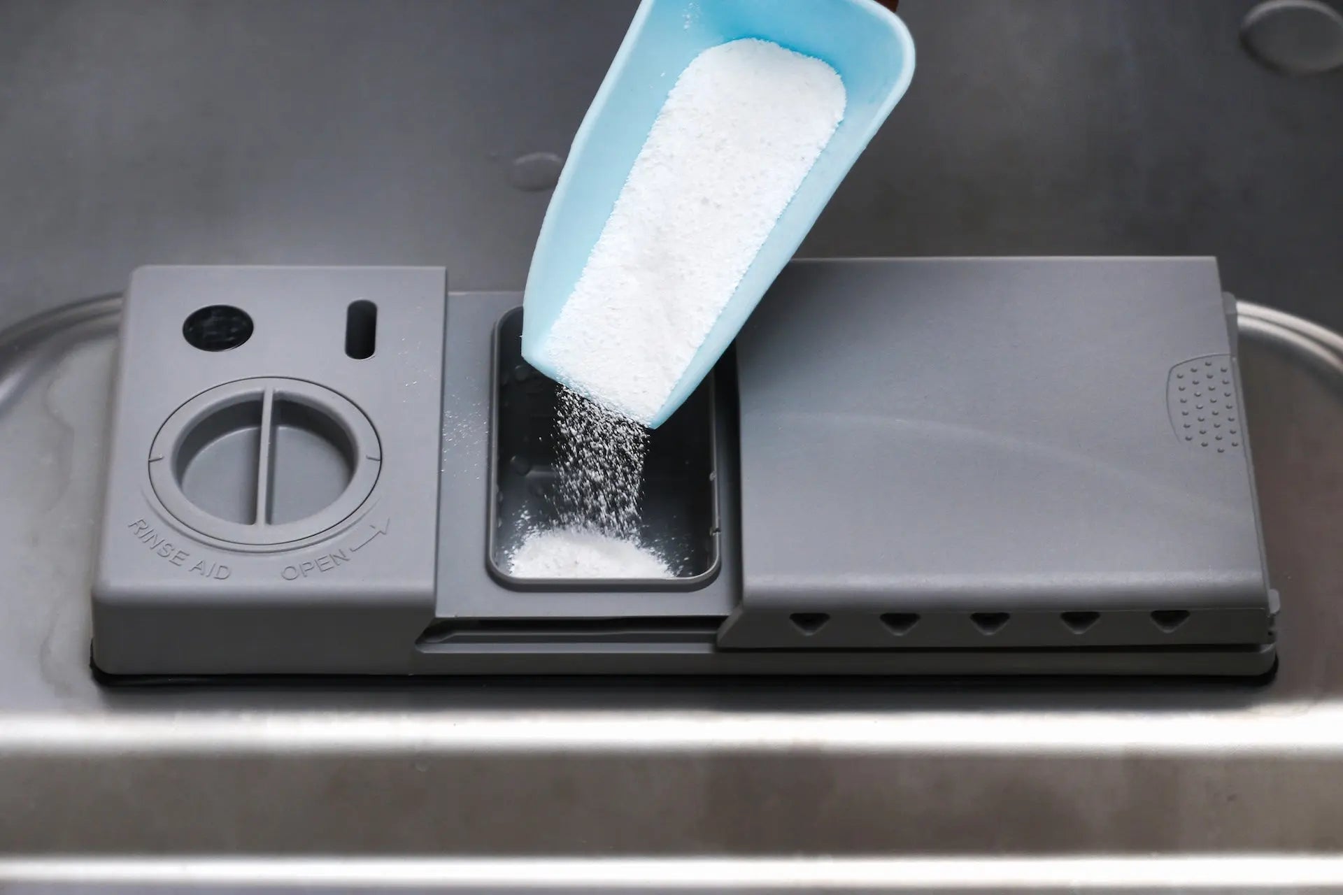 - Spülmaschinenpulver immer direkt in das Dosierfach geben – nicht lose in die Maschine streuen.